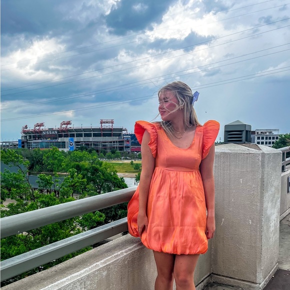 Orange Ruffled Mini Dress