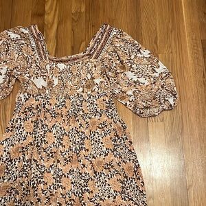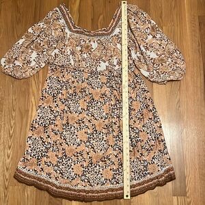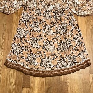 Orange Rust Floral Boho Peasant Flowy Dress‎ large