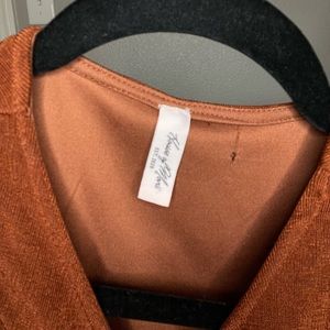 Tight fitting, never worn, v neck ish, small hole where tag was, not noticeable