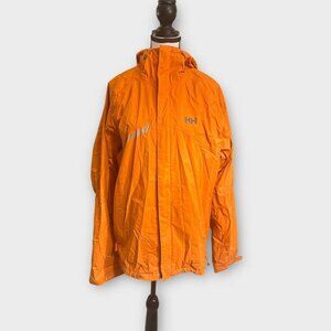 🖤 Details: Orange windbreaker/rain jacket. Zips and velcros up front.