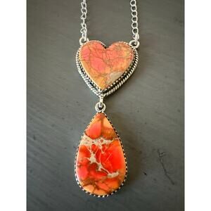 Orange Sea Sediment Jasper | Statement Boho Necklace | 925 Sterling Silver. Solid back,
