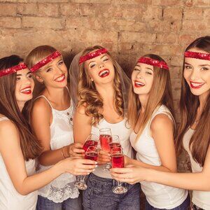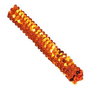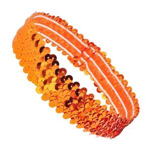 Stretch Sequin Headband Bulk Pack: The individually wrapped 1.5 wide orange elastic headband has 11 diameter when unstretched. The adjustable glitter headbands for women make great sports, roaring 20s, & Great Gatsby themed party favors.