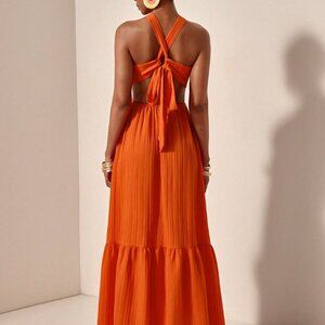 Orange Sexy Women's Casual Vacation Cross Halter Neck Hollow Backless Dress