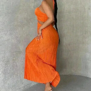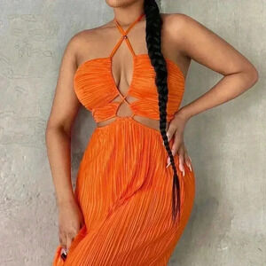 Orange Sexy Women's Crisscross Tie Backless Halter Swing Dress