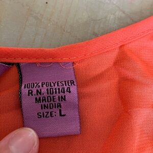 This vibrant orange blouse features a sleeveless design and a relaxed fit, perfect for a casual yet stylish look. The lightweight fabric ensures comfort and breathability, making it an ideal choice for warm days.