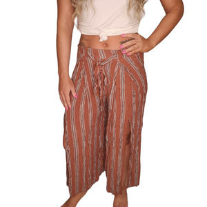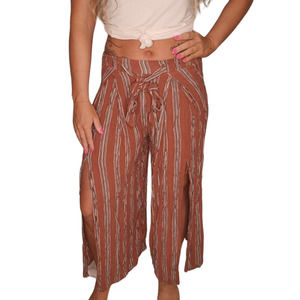 Orange Slit Leg Pants Womens Small Wide Leg Boho Striped Gypsy Festival Comfy