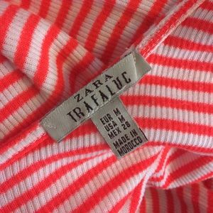 Zara Trafaluc. Very soft 100% cotton. Bright almost neon orange in contrast with white stripes makes a statement! Slight swoop in back. Compliments curves. Looks nice but feels casual to wear. Only worn once! Excellent condition.