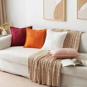 🌸Beautiful pillowcase set featuring a stylish striped texture & minimalist design. Made of durable and soft corduroy fabric that gives you a comfortable touch. Irresistably comfortable to touch and lay on. Perfect for your bed/couch or as a lovely gift. Chic farmhouse vibes ✨