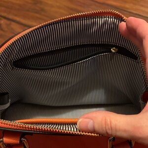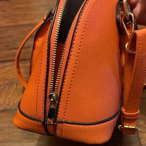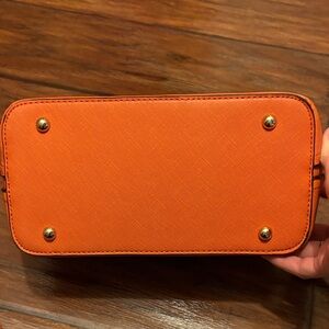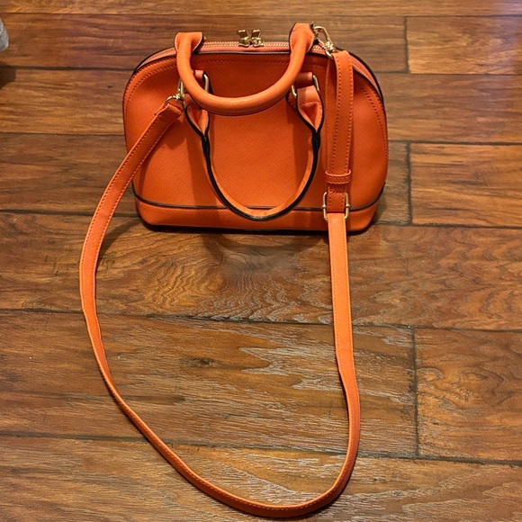 Stylish and vibrant orange handbag perfect for any occasion. Features a sleek design with a comfortable shoulder strap or two hand straps for easy carrying.