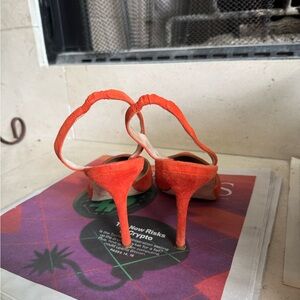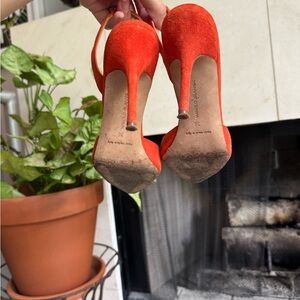 Orange Suede Manolo Slingback Heels