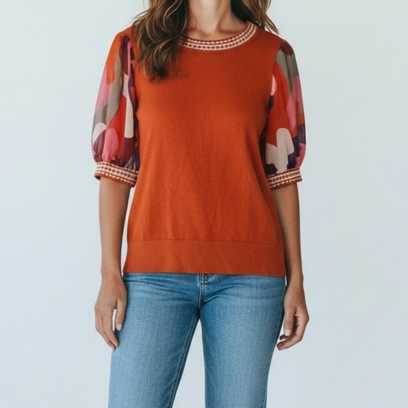 Orange Sweater with Patterned Sleeves Rio & Rian Size M