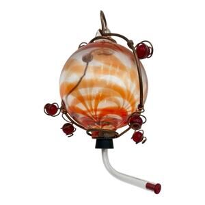 Orange Swirl Blown Glass Copper Hanger Hummingbird Feeder Runner Stopper EUC