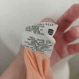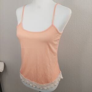 This is a light orange cami / tank top by Full Tilt in size extra small. Meant to be a bit loose and flowy on your body. The fabric is super soft. The bottom has a cream embroidered lace detail. Adjustable straps. The brand tag was torn but doesn't affect the shirt at all.