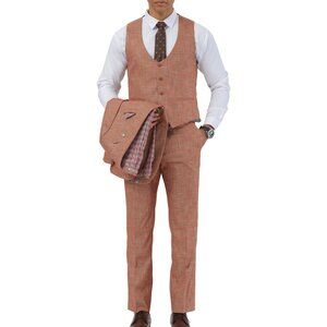 Orange Textured Windowpane Peak Lapel 3 Piece Stacy Adams Men's Suit