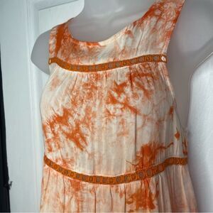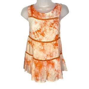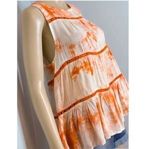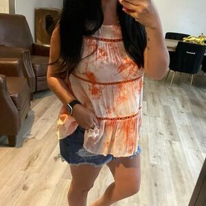 Orange tie dye flowy tank with crochet eyelet details. Size small.