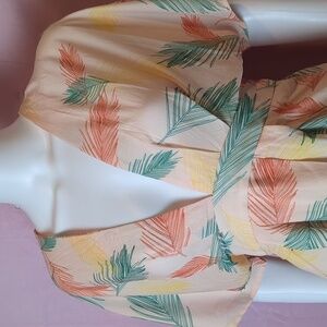 Orange Tropical Palm Tree Plunging V Neck Tie Open Back Summer Mini Dress Medium