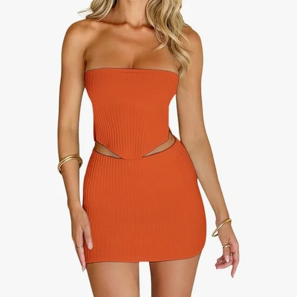 Orange Two-Piece Ribbed Set