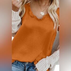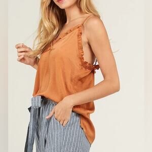 Orange V-Neck Satin Ruffle Adjustable Spaghetti-Strap Camisole Size Large 🧡✨🧡