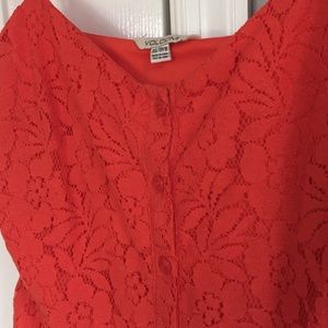 Orange Volcom dress. Flower lace overlay. Worn once before I had a baby. Doesn't fit my boobs anymore. Size XS. Excellent condition.