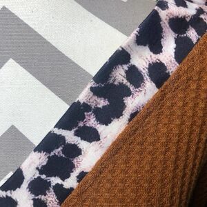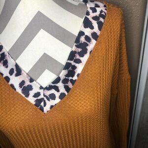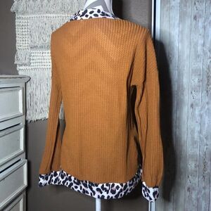Orange Waffle Knit Leopard Trim Long Sleeve Top size medium. Stretchy. Thin and lightweight. Cute comfy and trendy. Excellent condition