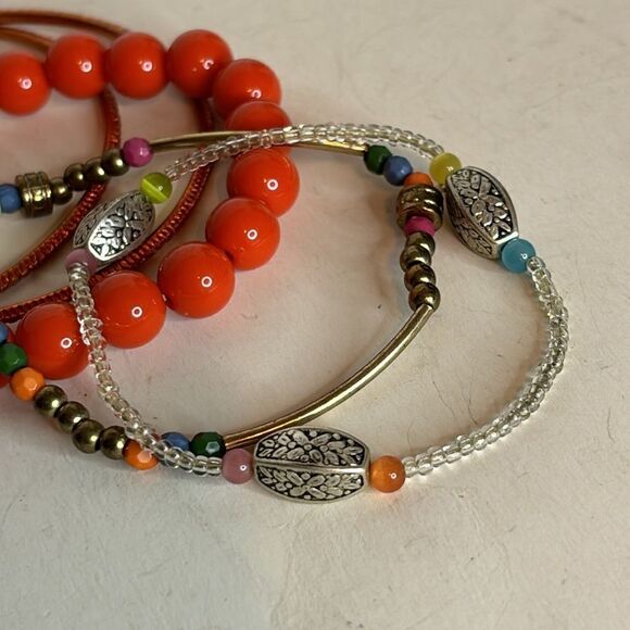 Orange Warm Tone Bundle Stack of Assorted Bracelets beaded/stretch statement set
