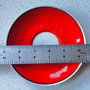 This vintage ceramic saucer showcases a vibrant orange interior with a contrasting white base. Its elegant design adds a touch of sophistication, making it a timeless addition to any dishware collection. Ideal for serving small portions, this plate combines both functionality and style.