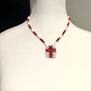 Orange White Purple Native American Style Beaded Necklace Claw Clasp Boho 9 Inch