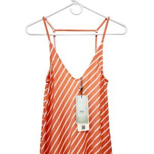 Orange & White Striped Sleeveless A-Line Dress Medium Lightweight Casual Size M