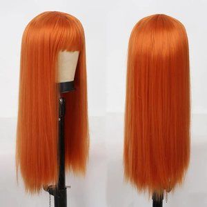 Orange Wig-Long Straight Hair Wig with Bangs