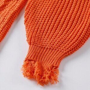 Orange Women's Off Shoulder Sweater Frayed Hem Detail Long Sleeve Pullover
