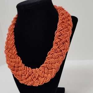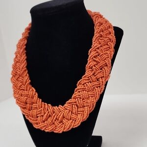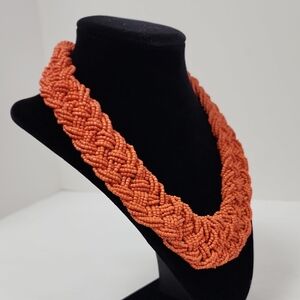 Elevate your style with this stunning orange braided breaded necklace. Perfect for any occasion, this piece adds a vibrant touch to your outfit. A statement piece full of ethnic inspired style.