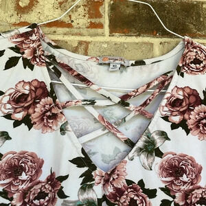 Orange X Floral Criss Cross V-neck Short Sleeved Blouse