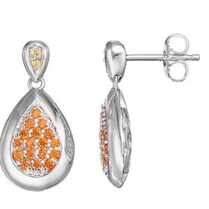 Sterling silver teardrop designs decorated with glowing yellow and orange cubic zirconia stones give these drop earrings radiant charm.