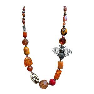 Orange and Amber beaded necklace with a bee pendant