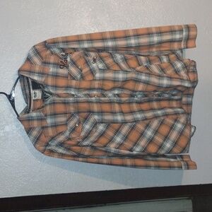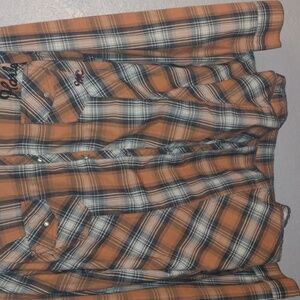 Orange and Black Plaid Embroidered Harley Davidson Button Down Top 2X. Great condition