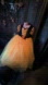 Stunning orange and black dress with tulle skirt. Perfect for special occasions.