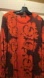 Stylish women's dress featuring a bold orange and brown pattern. Perfect for adding a pop of color to your wardrobe.