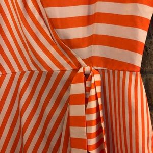Orange and Cream stripe dress. Tie detail in front. Size 10.