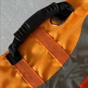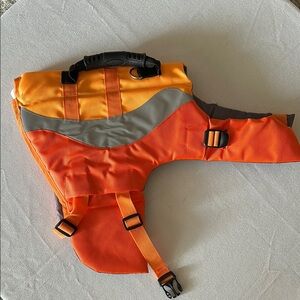 Bright orange and gray dog life jacket with a handle. Perfect for water safety. Never used. I have some extra cooling pads I’ll send with this purchase! 🖤🐶