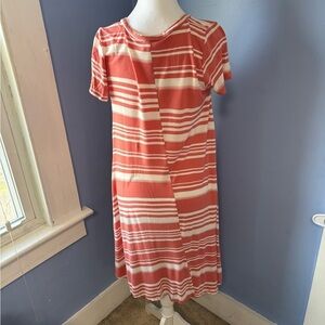 Orange and Pink Casual Midi Sundress with Crew Neck