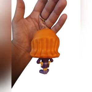 Cute keychain figure with orange hair and a purple outfit. Perfect for fans and collectors