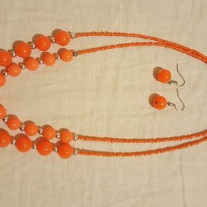 Drysdale Orange and Silver beaded necklace and earring set. Worn once in new condition. 9.5 inches from clasp closed to end of beads.