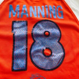 Vibrant orange and white Broncos jersey #18