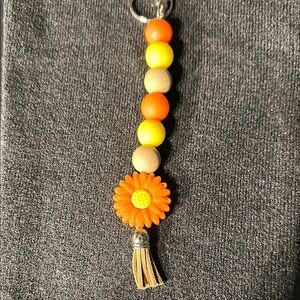 Vibrant keychain featuring orange and yellow beads with a flower charm. Perfect for adding a pop of color to your keys.
