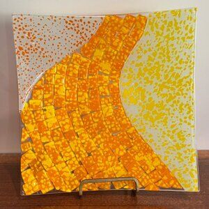 Orange and Yellow Fused Glass Square Plate Serving Dish 8 3/4"