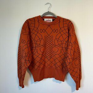 Orange and black vintage knit sweater knit by Obermeyer 30% wool 70% acrylic made in Hong Kong ladies size medium
