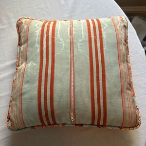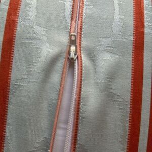 Custom-made, orange and blue decorator pillow with zippered opening for removal and washing, no flaws or stains, excellent condition, seat photos for details