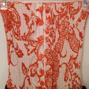 Worn once, doesn't fit anymore orange and white dress. Extremely cute one, was one of my favorites. Comes with the brown belt. The top, which looks small is extremely stretchy and the bottom is ruffley and poofs out. Very good condition.