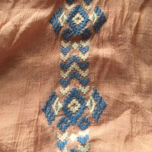 Worn twice. Cute flowy crop top blouse. Very comfortable and looks great with cut off shorts or a long skirt.
