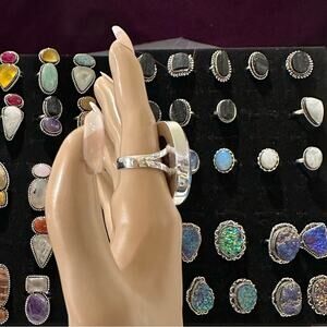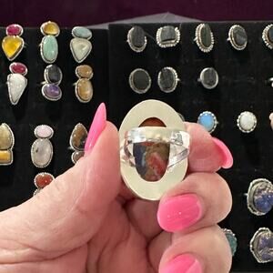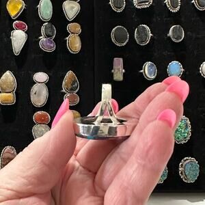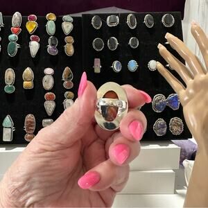 Orange blue pink Spiny oyster solid sterling silver 925 ring handmade size 7